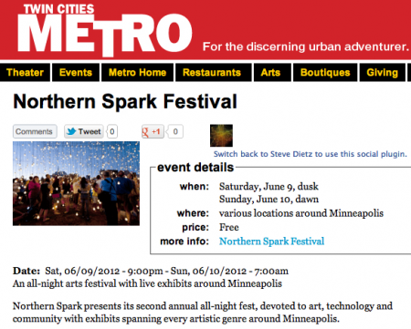 It was a lovely day in Powderhorn Park for the annual May Day Festival. We lounged in the shade, passed out stickers and signed up people to volunteer for the festival. Thanks to our steadfast crew (Ted, Shannon, Erik, Angie, Birdie, Isabel) who talked to hundreds of strangers about Northern Spark. See a few more […]