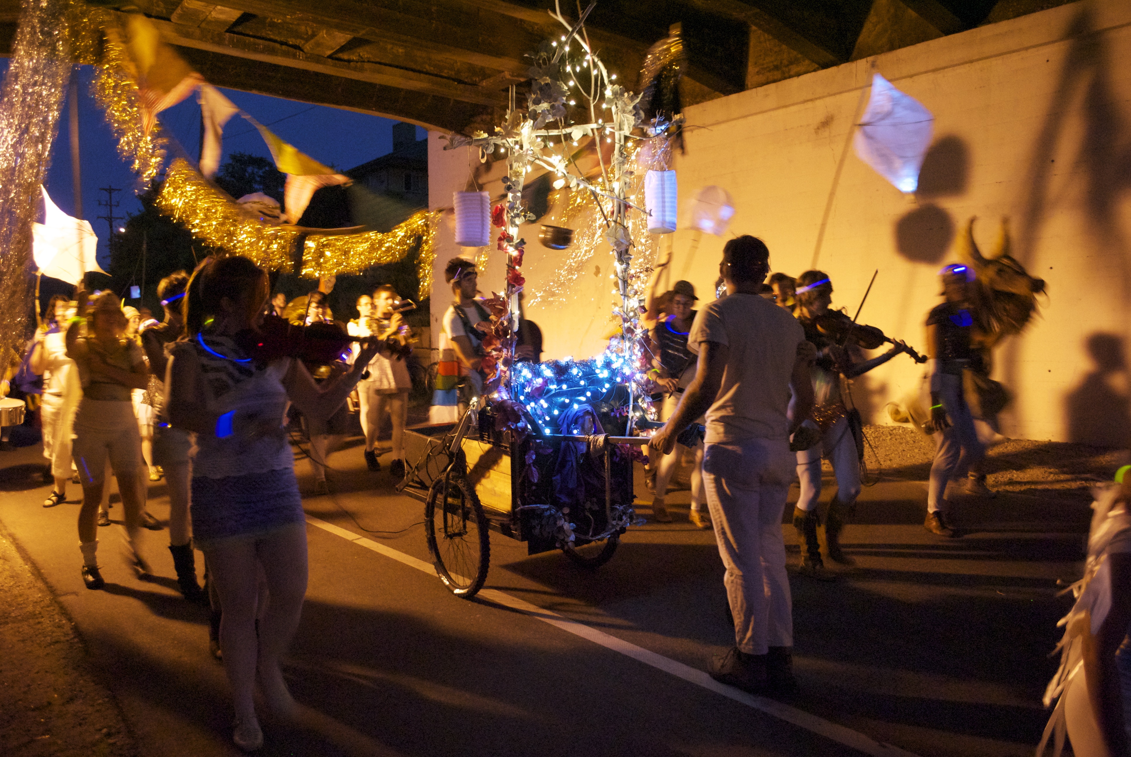 Jackie Beckey’s Psychedelic Art Parade will be kicking off the festival tonight at 9:15 pm on the Stone Arch Bridge. This 40 piece marching band that draws inspiration from the after-dark parades of Mardi Gra, as well as Afro Beat rhythms, Balkan brass phrasing, and Eastern European string arrangements, has composed a special performance to start off tonight’s festivities.