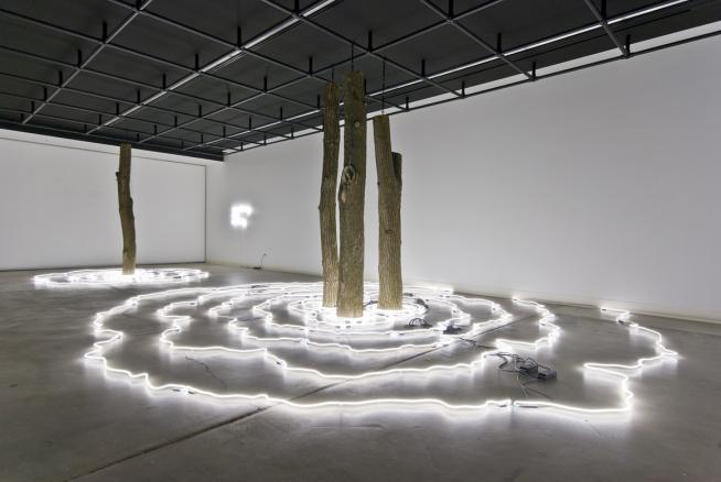 Peter Goche takes the natural forms of the Mississippi ox-bow, forms made over millennia, and transforms them into sinuous sculptures of crafted wood. Meredith Foster also looks to the ageless river for her inspiration, drawing out the river and its landscape through water and ash. Keith Lemley works with wood and neon, creating an illuminated arbor of wonder with the ancient timber of The Soap Factory, while Amy Reckley gathers material from the building and its environs for an explosion of sculptural gesture. Chris Lawrence arranges objects into patterns that evoke the hidden occult geometries of the gallery space. Jess Hirsch takes abandoned and forgotten furniture and transforms it into sculpture, changing the pieces beyond recognition and then re-presenting them to the original owners. David Hamlow takes the refuse and detritus of our commercial life and fashions this material as building blocks for his own interpretive structures.