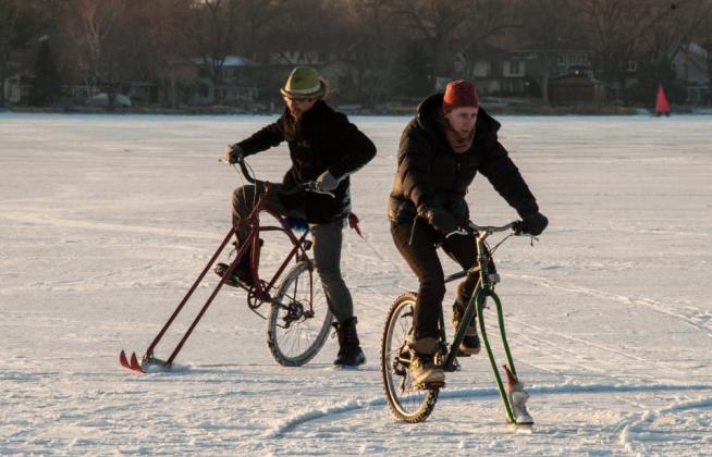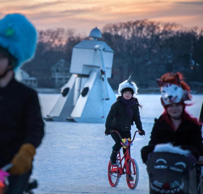 The ICE-Cycles Collective invites everybody to experience the joy of art, bicycles, winter weather, and fashionable personal expression in a completely new way. Many bikers are not four-season cyclists, and they may not be aware that bicycles are a rich medium for artistic expression. With expert guidance from cycling devotees, artists, and problem-solvers, art and cycling can be a tandem joy year-round. ICE-Cycles seeks to enhance visitors’ enjoyment of bike transportation and to educate participants on ways to safely take the fashionable fun home.