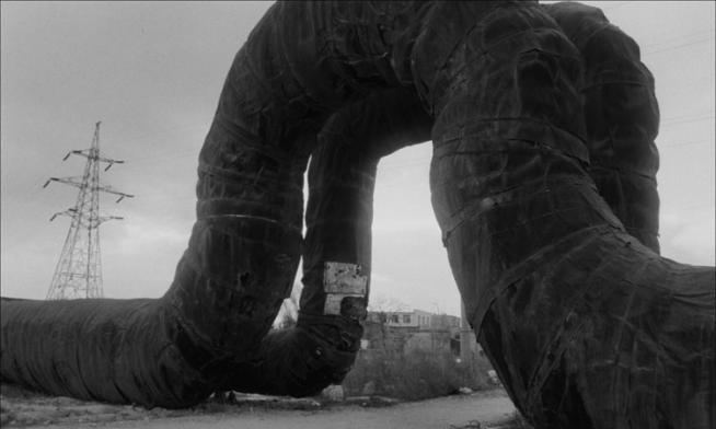 whiteonwhite:algorithmicnoir is a noirish film that never ends and never really begins. A computer dubbed “The Serendipity Machine” continuously shuffles 3,000 shots, 80 voice-overs, and 150 pieces of music, creating an ever-changing story involving Holz (Jeff Wood), a geophysicist stuck in a 1970s-era metropolis called City-A. Just as its citizens are subjected to time manipulations, Holz’s own fate is dictated by the machine editing this film. 2011, video.