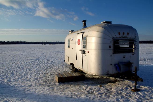 TönöSauna is a wood-burning sauna shanty built from a salvaged 1966 Avion travel trailer located in Minneapolis. It is a social and civic space, a mobile new media platform for public talks, art, and presentations in which people can rest and warm themselves during the harsh winter months of the Upper Midwest. The Avion’s aluminum skin is the same as World War II military aircraft, now reclaimed in service of the public good. The custom-built interior mimics the construction of the trailer and contains curved, organic CAD/CAM fabricated benches. TönöSauna is an ergonomic landscape meant to accommodate a wide variety of body positions and body types.