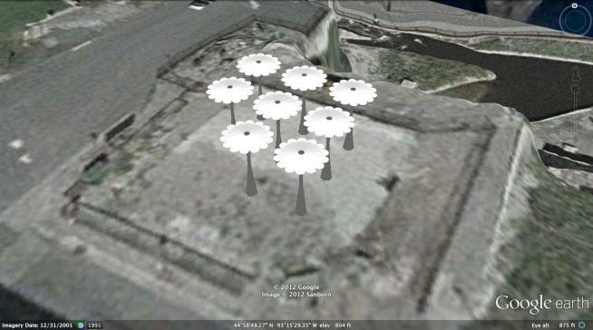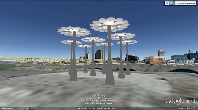 For 2012, we commissioned Wil Natzel to create an architectural-scale installation at the northeast end of Portland Avenue near the Stone Arch Bridge from the humblest of materials: cardboard. Using a specialized CNC cardboard knife, he will make eight blooms ranging in height from 15 to more than 20 feet, assembled into a cluster. Each bloom has a round ten-foot diameter top that forms a permeable enclosure—an environment that can be explored throughout the night.