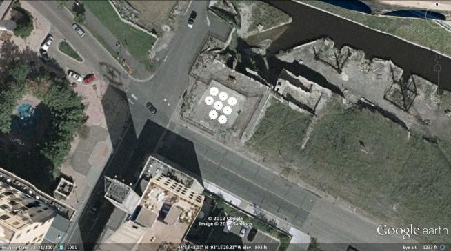 Natzel is interested in the history of architectural ornamentation, as well as its expression today using contemporary tools in unexpected ways with unusual materials. He has produced and assembled large architectural constructions of cut cardboard (giant domes with squids) at the Soap Factory in Minneapolis. Night Blooms is his first outdoor cardboard installation. This whimsical bouquet, reminiscent of sunflowers stretching toward the moonlight of nuit blanche, contrasts with the surrounding historic structures in the community. The ephemeral materials, like a memento mori, remind us of the passage of time and the resourcefulness necessary to survive and prosper.